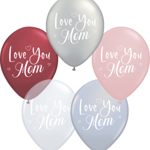 Love You Mom – (50ct) 12″ – 2 sides – Latex BalloonsLove You Mom – (50ct) 12″ – 2 sides – Latex Balloons